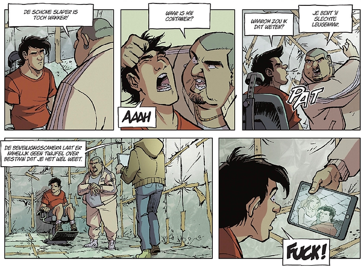 Veel bizarder dan de kus vond ik het om Suske (de echte) in een martelcontainer te zien zitten. Een martelcontainer! Dat is in tachtig jaar Suske en Wiske écht nog niet eerder gebeurd. Maar daar hoor je dan weer helemaal niemand over.