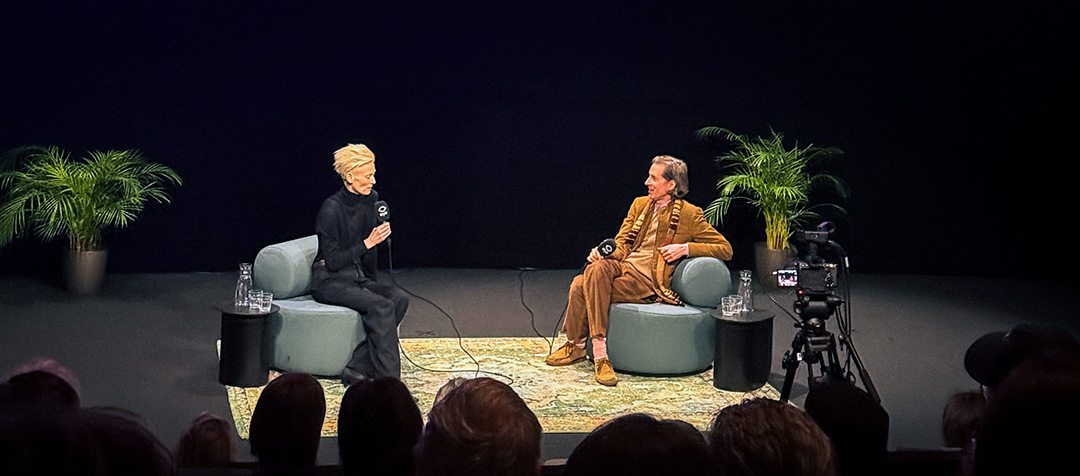Ik was een van de gelukkige aanwezigen op de avond met Anderson — al jaren een van mijn favoriete regisseurs. Aan de hand van vier fragmenten uit de films van Anderson, waarin Swinton een rol speelt, zouden ze het gesprek voeren. Zo zouden ze niet te veel afdwalen. Dat gebeurde natuurlijk alsnog. Zelfs zodanig dat Anderson het publiek soms leek te vergeten. Onbewust draaide hij dan tijdens het praten steeds meer op zijn stoel naar Swinton toe, tot hij bijna met zijn rug naar de zaal zat. Om zich daarna weer snel terug te draaien. “Sorry, is dit wel boeiend voor jullie eigenlijk?”, vroeg hij dan. (Ja!)