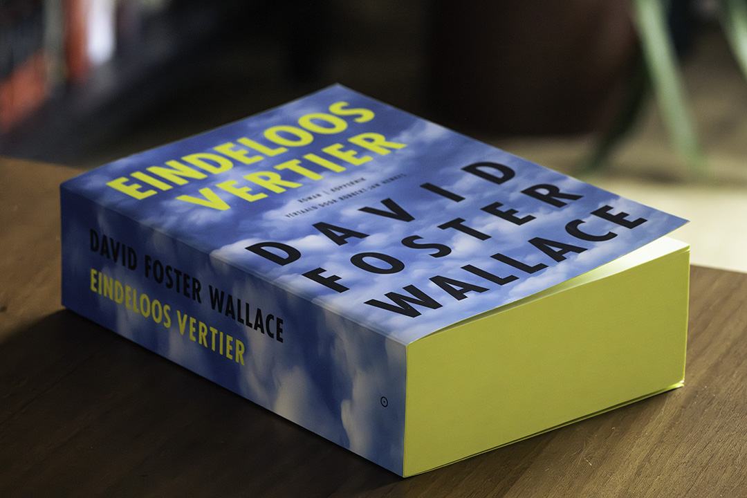 De kolossale roman Infinite Jest van David Foster Wallace bestaat dertig jaar en er is nu eindelijk een Nederlandse vertaling: Eindeloos Vertier. Het is een blauwgele baksteen van 1.168 pagina’s. Lekker opvallend voor de performative readers, behalve dat je deze pil niet zomaar in je tas meeneemt.