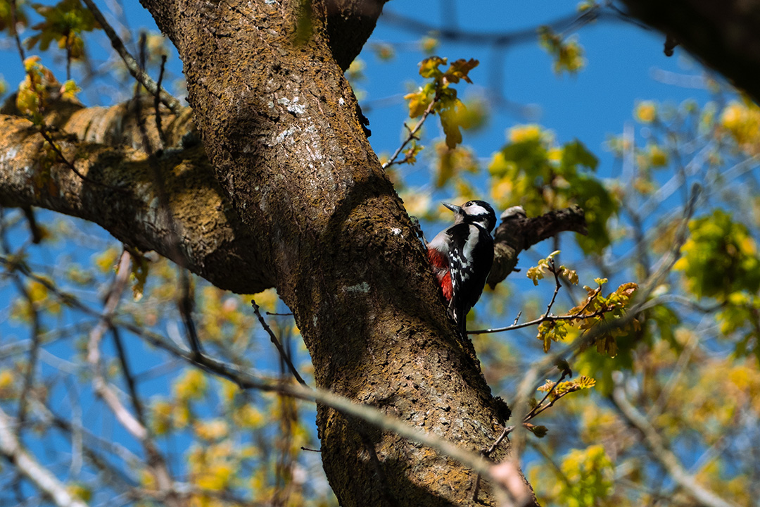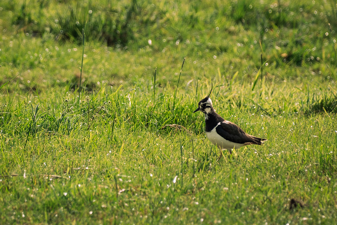 Andere vogels wel. Het roodborstje, de pimpelmees, de tjiftjaf en de zwartkop. Als je ze niet ziet, dan hoor je ze wel. De beginnende vogelspotter (ik) leunt daarvoor dankbaar op de app Merlin, die meeluistert en herkent. Ik heb niet het geduld om naar boomtoppen te turen. In een open veld spot ik een kievit. Onmisbaar, de kuif verraadt ‘m. De grote bonte specht laat zich een paar keer zien; zwart-wit met felrode tinten.