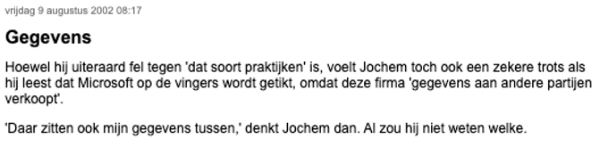 Van alle tijden: techbedrijven die je data verkopen. Dit schreef Wim de Bie ruim twintig jaar geleden op zijn weblog: