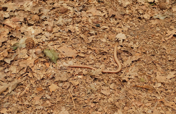 Eerste Paasdag in het bos. Dit lijkt een slang, maar dat is het niet. Het is een hazelworm. Wat dan weer geen worm is. De hazelworm is een pootloze hagedis. Deze verwarrende diersoort laat zich naar verluidt niet vaak zien, dus we hadden geluk.