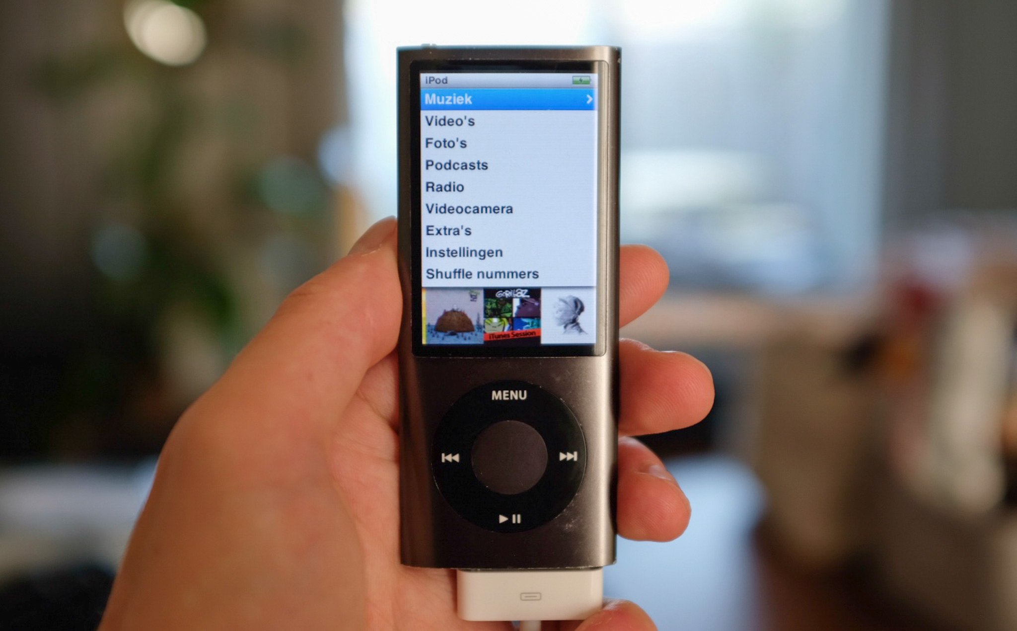 Tijdmachines bestaan, ze zijn klein en liggen op zolder onder een laagje stof. Ik steek de stekker van mijn iPod nano (vijfde generatie, 2009) in het stopcontact. Het schermpje waar ik jaren geleden dagelijks naar keek, licht op. Onder het menu schuift een carrousel van albums die op het apparaat staan voorbij. Wat luisterde ik voordat Spotify bestond? Ik herken de hoes van Humbug, van Tempest, van Innerspeaker. Arctic Monkeys, Bob Dylan, Tame Impala. Mijn muzieksmaak is niet zoveel veranderd.