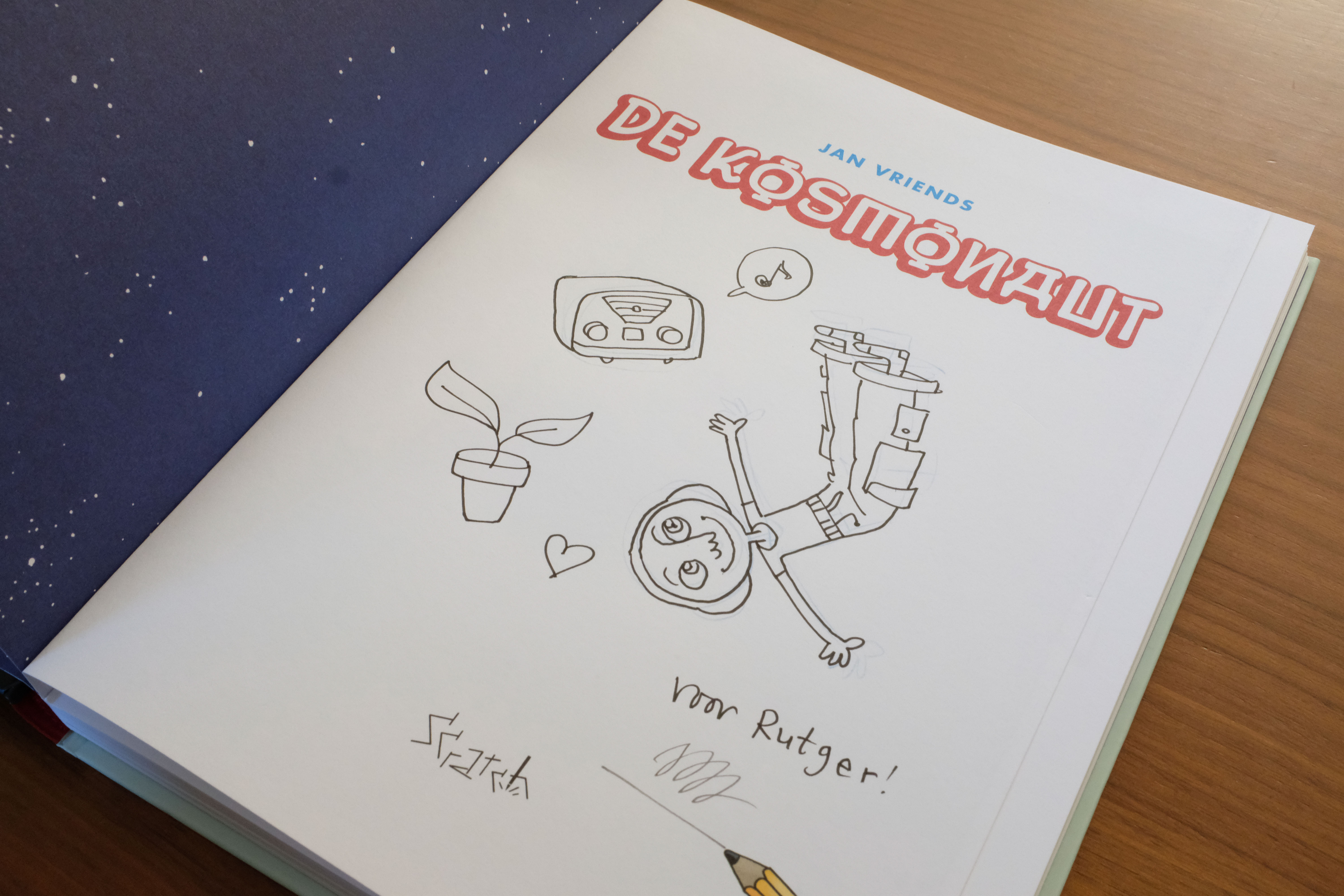 Ik ontmoette de zeer sympathieke tekenaar Jan Vriends een week geleden op het Stripfestival Breda, waar hij voor De Kosmonaut de Willy Vandersteenprijs kreeg uitgereikt voor het beste Nederlandstalige album van het afgelopen jaar. Vriends was zo vriendelijk mijn exemplaar te signeren en we raakten aan de praat over de ruimtevaart. Als kind zat hij al voor de tv om gefascineerd naar de Apollo-missies te kijken - en die liefde voor wetenschap en ontdekking bleef.